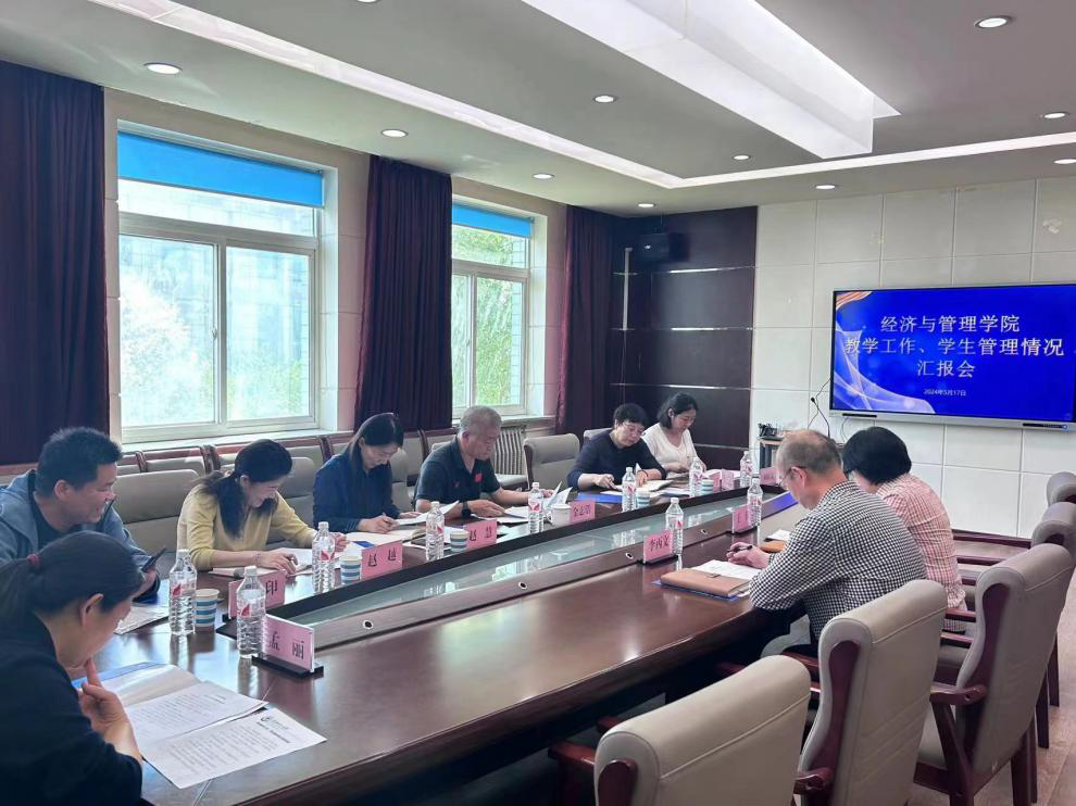金志浩副校长一行认真听取汇报,全面了解了学院教学工作和学生管理等情况,对学院扎实工作给予肯定,并提出三点意见,一是全面落实三全育人理念,加强113家庭化育人举措的落地实施,在关心学业后进学生方面进一步下功夫;二是加强理论联系实际,毕业选题结合生产实际、社会需求做到全覆盖;三是加强专业教材建设和实验室建设,促进经管学科各专业高质量发展。