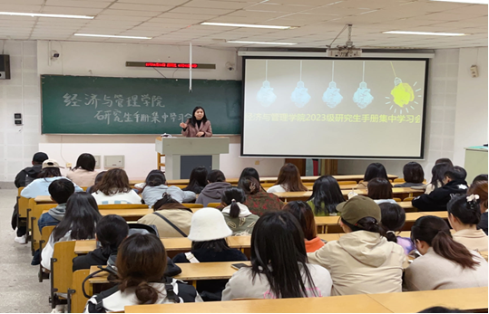 pp电子于11月初在通明楼138教室召开《研究生手册》集中学习,研究生辅导员张丽老师向同学们介绍了《研究生手册》主要内容,重点解释了学校奖助工作管理办法、研究生宿舍管理以及学位授予工作细则等关键信息,并向大家阐释了这些制度设立的背景和意义,详细解答了学生们的困惑。