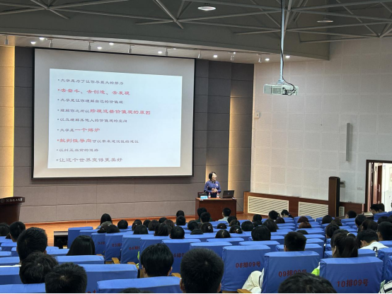 为帮助2023级新生尽快适应大学生活,起好步,开好局,明确未来方向,坚定专业自信,pp电子游戏平台官网在碧帆楼报告厅开展 “院长第一课”新生入学教育主题讲座。本次讲座由pp电子游戏平台官网副院长王蓉主讲,党委副书记孙晓静主持。