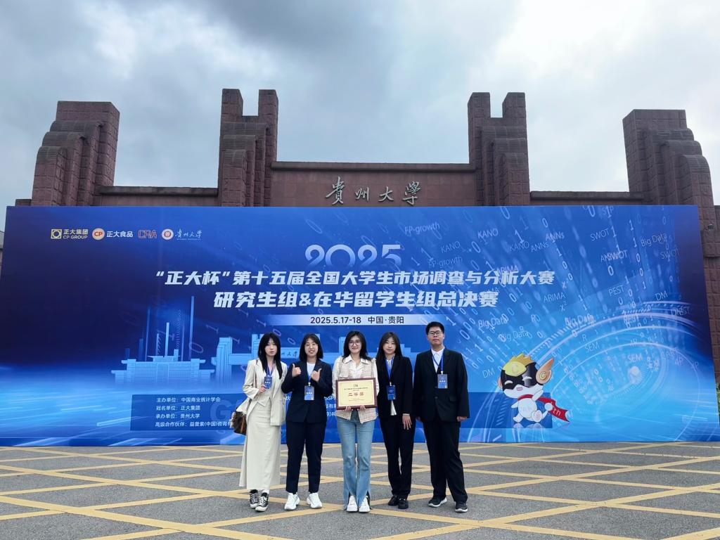 近日,第十五届全国大学生市场调查与分析大赛研究生组及在华留学生组总决赛于贵州圆满收官。作为国内市场营销与统计学领域的顶级赛事,本次大赛吸引了全国1184所高校、超34万名学子踊跃参与,其中研究生与留学生赛道汇聚589所高校同台竞技。在这场高规格赛事中,我校pp电子游戏平台官网参赛团队凭借深厚的专业功底与卓越的协作能力,一举揽获国家级二等奖1项、省级一等奖1项、二等奖2项、三等奖4项,展现出强劲的学科实力。