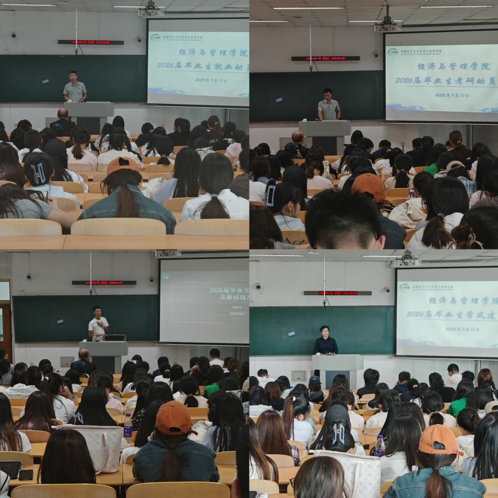为全面加强学风建设、引导毕业年级学生明确努力方向、树立正确的就业观,9月17日,pp电子游戏平台官网在通明楼338教室召开2026届毕业生年级大会。学院党委书记李丙文、院长王蓉、党委副书记关婷、工程管理教研室主任边晶梅、2025级辅导员刘伟、研究生辅导员郑烁今以及2026届全体毕业生参会。大会由2026届毕业生辅导员齐伟主持。