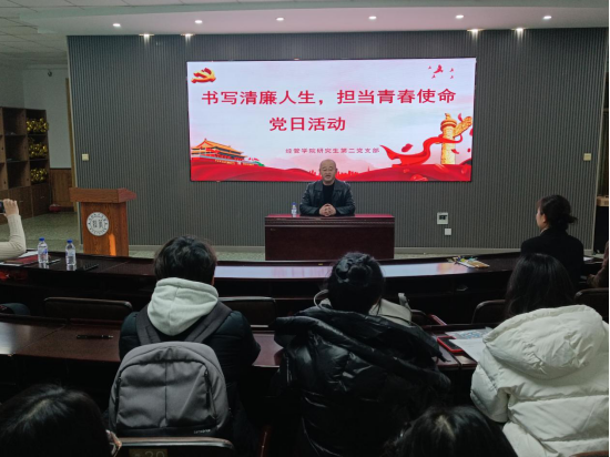 为进一步加强毕业生党员纪律建设,增强廉洁意识,扣好走向社会的“第一粒扣子”,12月13日下午1点,pp电子游戏平台官网开展“书写清廉人生,担当青春使命”2025届毕业生党员廉洁从业主题教育活动,学院党委书记李丙文、党委副书记关婷、组织员信莹以及全体2025届研究生毕业生党员参加活动,学院研究生第二党支部书记刘璐主持。