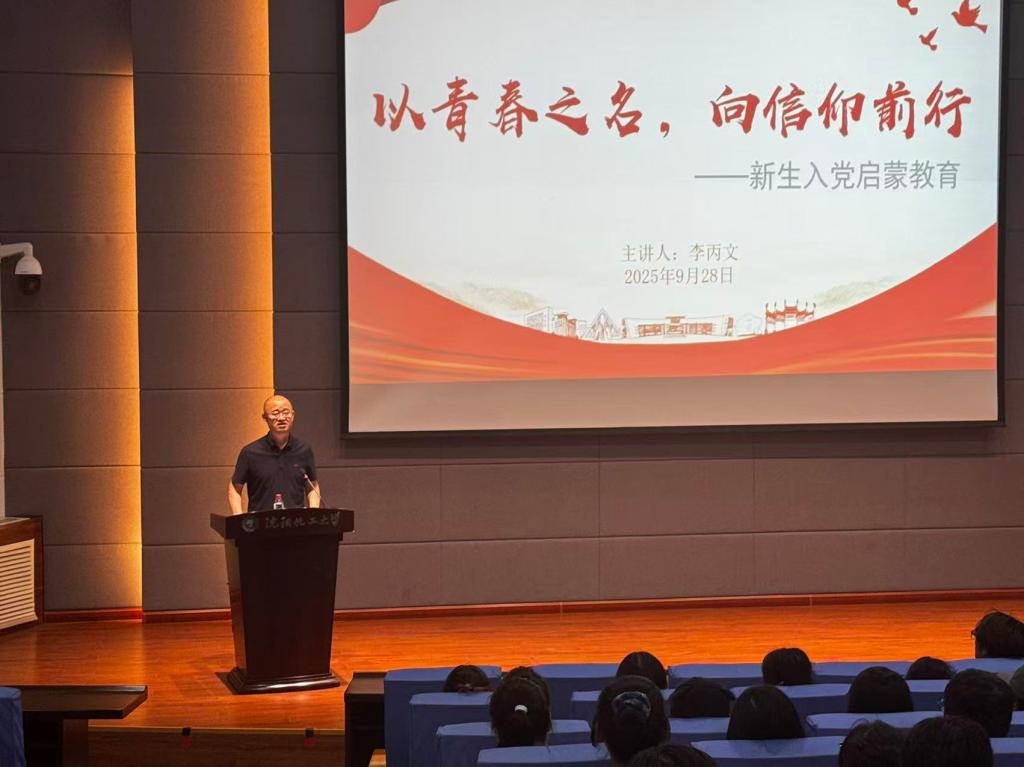 为引导新生坚定理想信念,增进对党的认识和感情,激发政治热情与报国志向,2025年9月28日晚,pp电子党委书记李丙文在碧帆楼304教室,为全体2025级本科生和研究生带来了一场主题为“以青春之名,向信仰前行”的入党启蒙教育党课。现场座无虚席,气氛庄重而热烈。