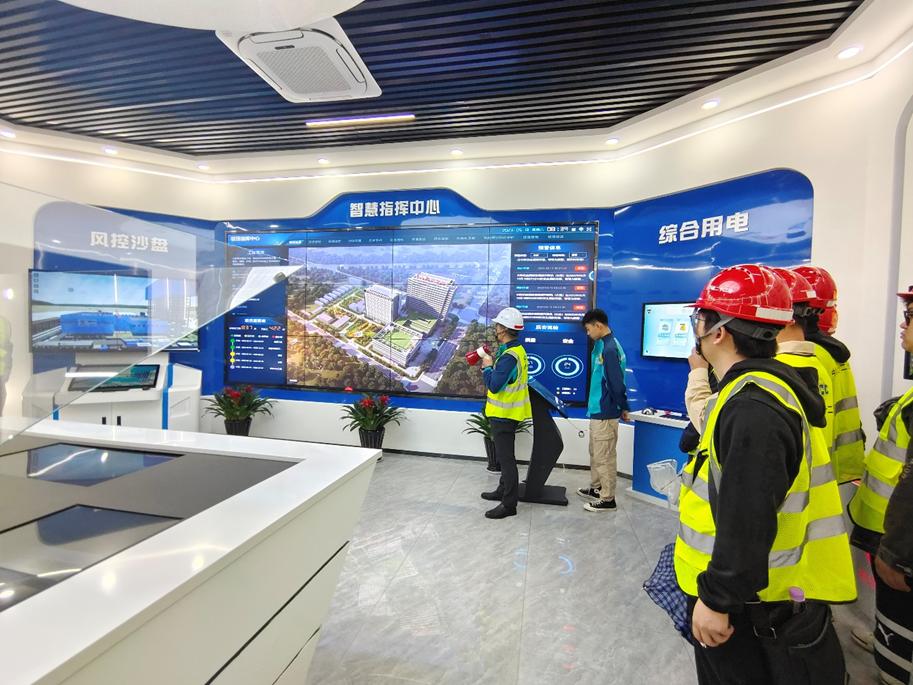 赵鹏部长及我校工程管理专业2011届校友张超副经理等对母校师生到来表示热情欢迎,师生一行参观了该公司的智慧指挥中心,总工程师谢迁为大家详细介绍。智慧指挥中心充分展示了智能化施工先进水平,对同学们进行安全施工警示教育,强化安全管理意识。