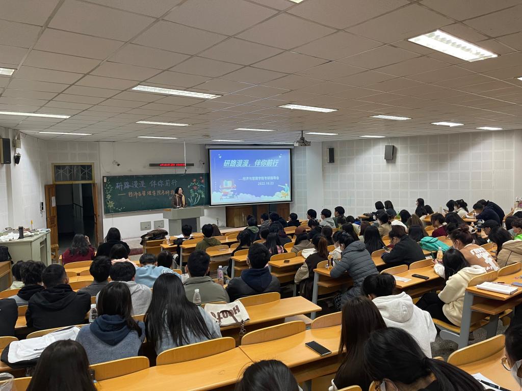 2022年10月22日18时30分,pp电子游戏平台官网于通明楼338教室召开了面向2019级和2020级本科生的考研指导会。会议由王怀老师主持,王蓉院长进行经验分享与指导。本次会议在极大地鼓舞了2019级本科生考研信心的同时,也为2020级本科生做出了细致的考研规划。