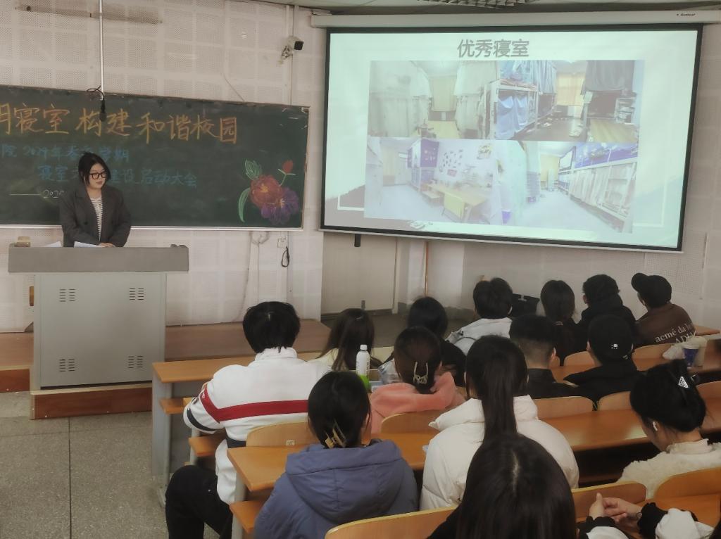 为营造良好的寝室文化氛围,提升学生的自我管理能力,推动pp电子学风建设,pp电子游戏平台官网于3月19日中午,在瑞师楼124教室召开以“营造文明寝室 构建和谐校园”为主题的寝室文化建设启动仪式大会。pp电子游戏平台官网党委书记李丙文、学工办全体辅导员、本研学生寝室代表出席会议。大会由学院学生会生活部负责人安雨欣同学主持。