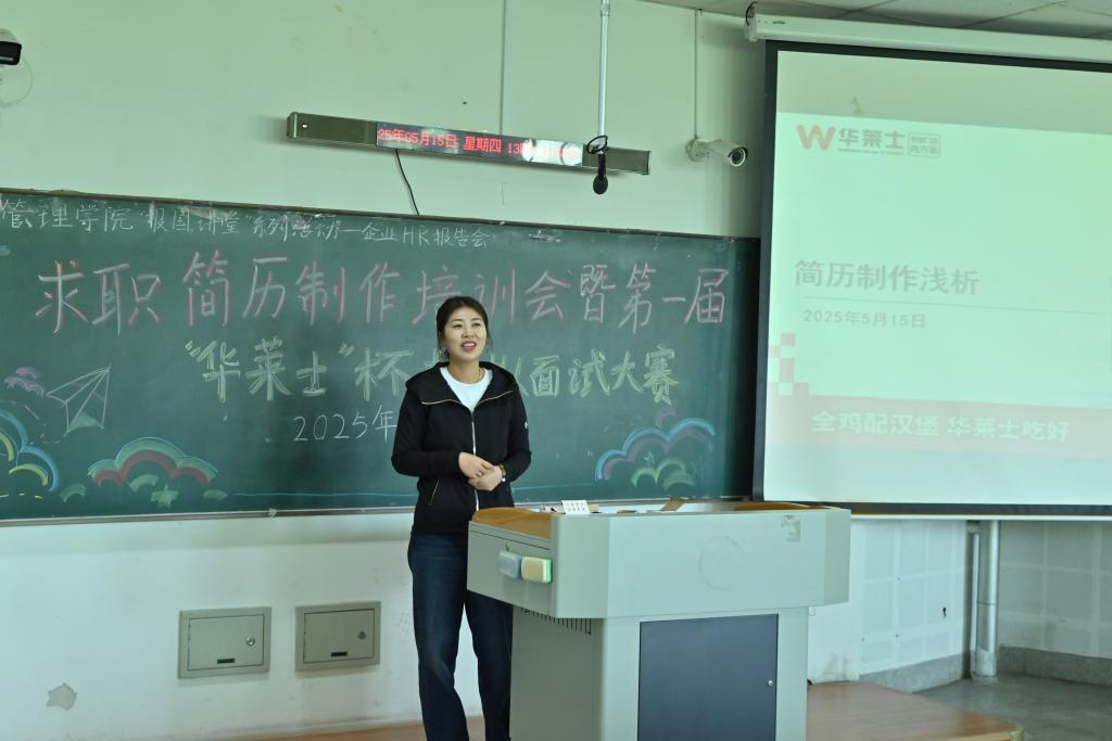 5月15日,pp电子游戏平台官网在通明楼338室举办了“报国讲堂”大学生职业规划与就业指导主题讲座暨求职简历制作培训会。本次活动特邀上海华莱士贸易有限公司沈阳分公司人事主管姚琳女士担任主讲。2022级本科生、2023级研究生参加讲座,本次活动由学院分团委书记王怀主持。